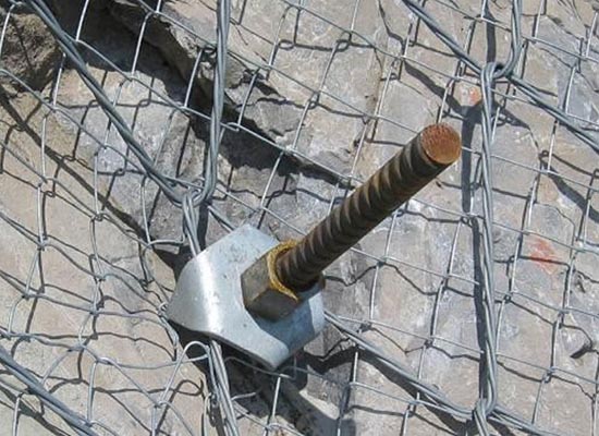 主动防护网采用钢丝绳锚杆或钢筋锚杆和支撑绳固定方式将金属柔性网覆盖在具有潜在地质灾害的坡面上,从而实现坡面加固或限制落石运行范围的一种防护网。主要特征构成分为钢丝绳网、钢丝格栅和高强度钢丝格栅三类,前两者通过钢丝绳锚杆和支撑绳固定方式,后者通过钢4.1加预应力)和钢丝绳锚杆(有边沿支撑绳时采用)、锚垫板以及必要时加边沿支撑绳等固定方式,将作为系统特征构成的柔性网覆盖在有潜在地质灾害的坡面上,从而实现起防护目的。主动网按起防护功能、防护能力、特征构成和机构形式的不同分为四类8种型号。